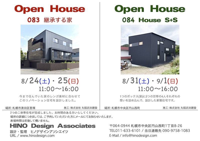 札幌市内に2件の住宅が完成しました。オーナー様のご厚意で、オープンハウスを開催させて頂く運びとなりました 。