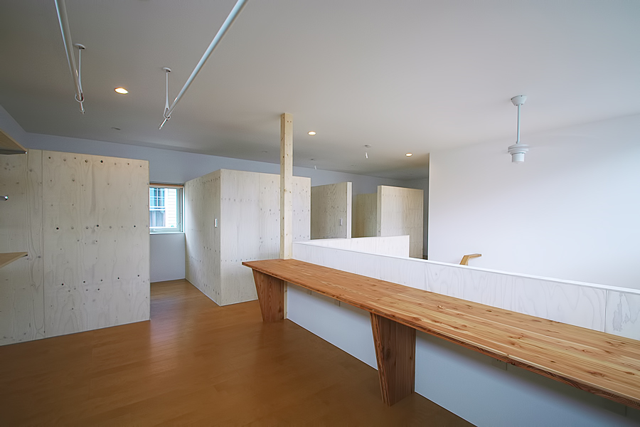 また、それぞれのベッドと机が配された専用のブースが廊下に沿って並び、子供それぞれの個性があふれるブースとなっている。