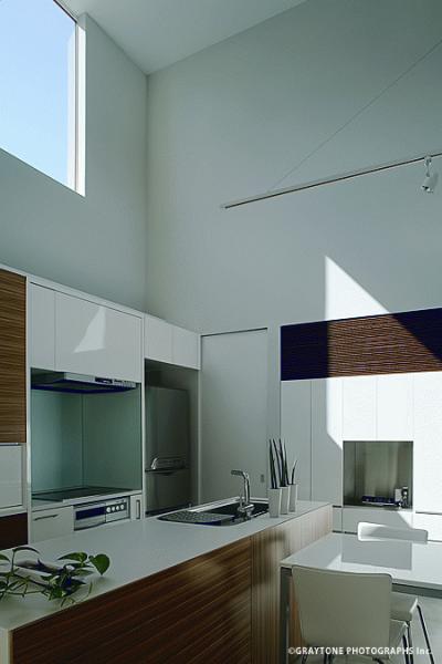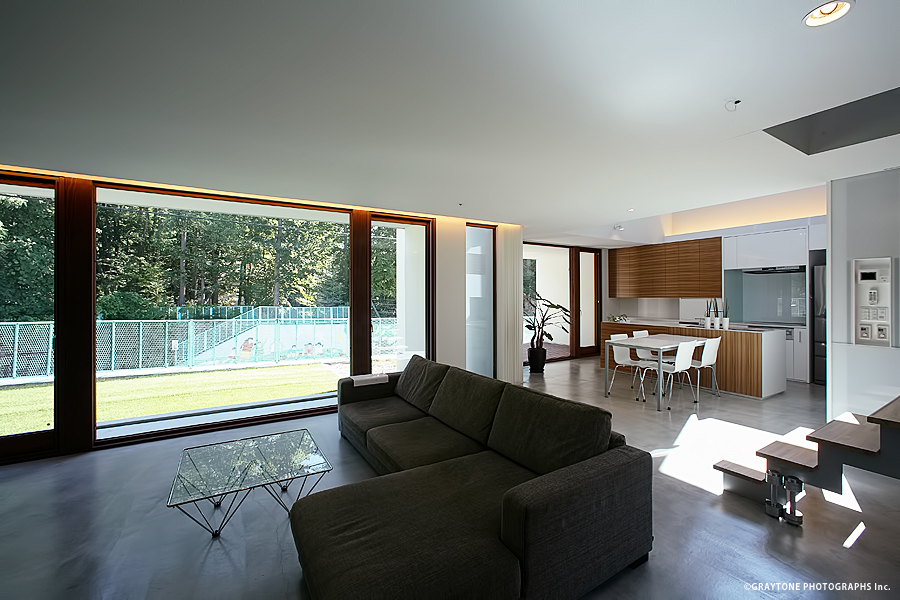南側には神社に面しており、その樹木等の風景を取り込んだ住宅。