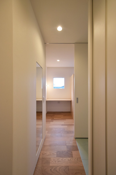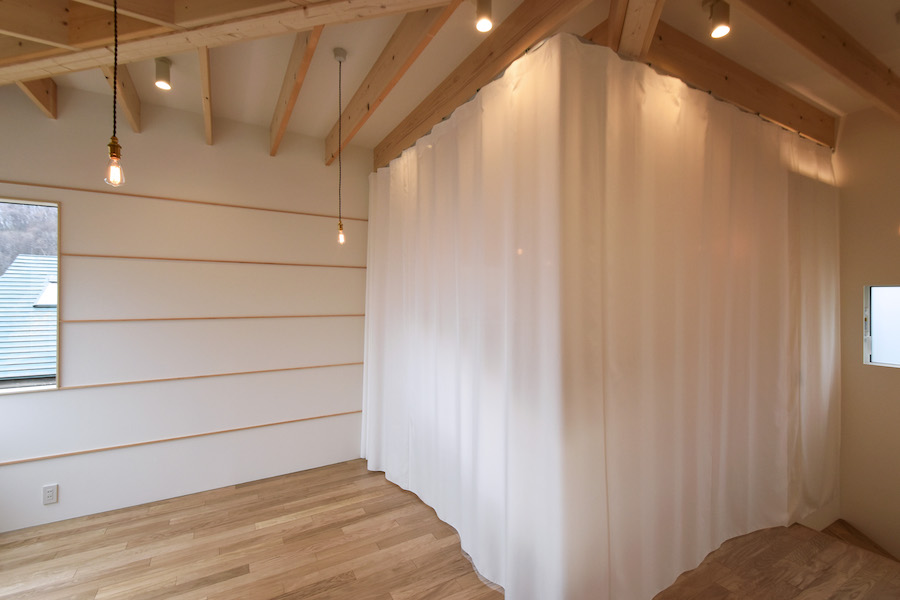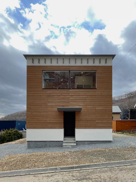 札幌市内の山の緑が多くて、街がみえる場所に小さい住宅ができました。正方形の建物を...