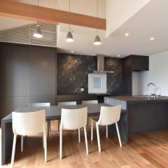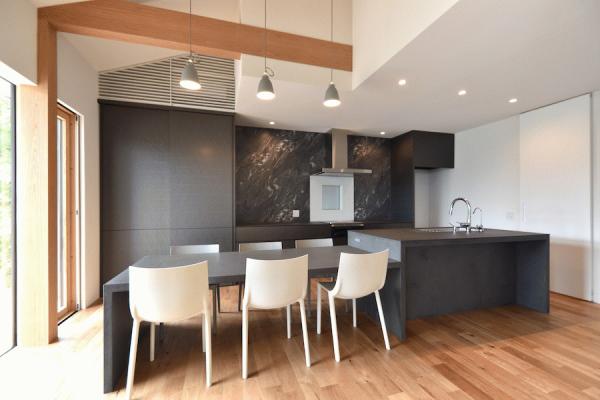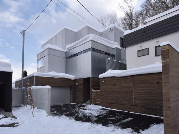 札幌市の住宅のリノベーション外壁は付加断熱にて断熱補強をして、外装は既存のタイルから全てガルバリウム鋼鈑へと改修しました。リビング・ダイニングの開きサッシは木製サッシへ変更するとともに、開口を床からとすることで開放的な空間へと改修しました。