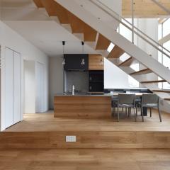 高低差のある敷地の住宅で、道路から住宅の2階にアプローチする住宅です。...