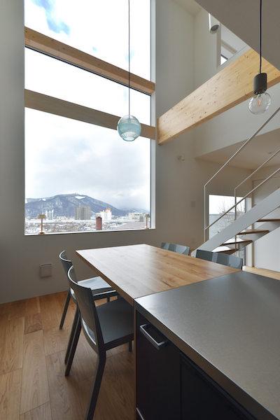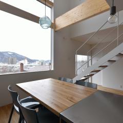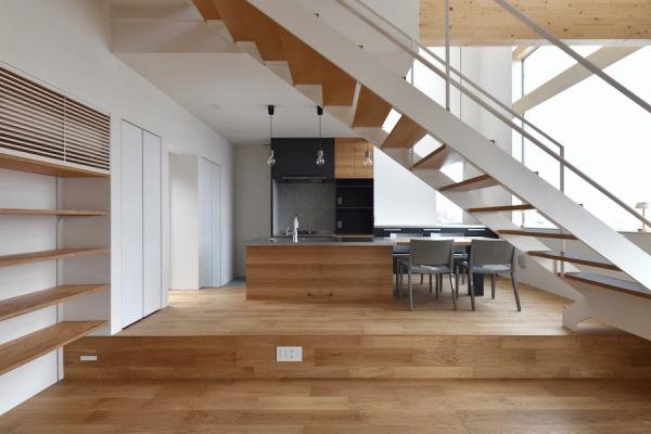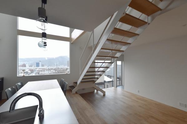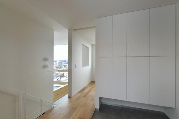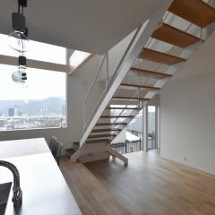 高低差のある敷地の住宅で、道路から住宅の2階にアプローチする住宅です。
