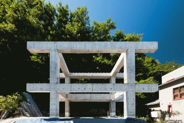 鳥居型の鉄筋コンクリート構造の架構を内包する住宅