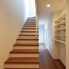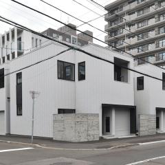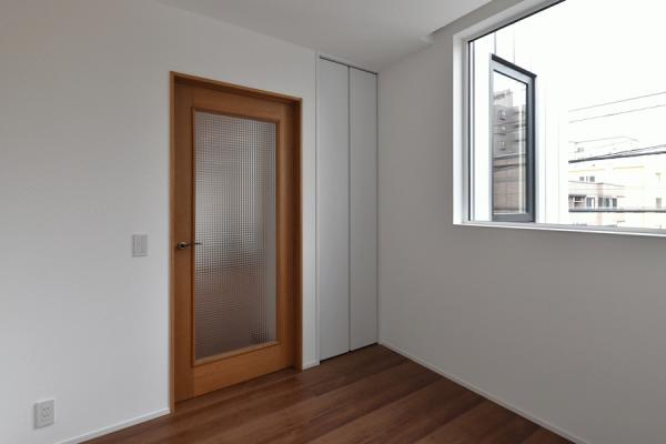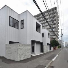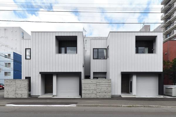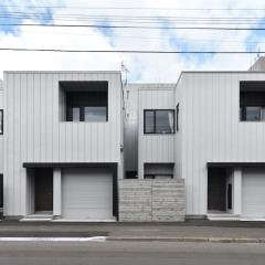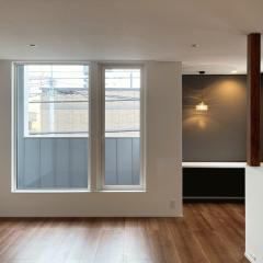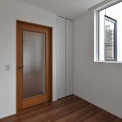 1軒3戸のファミリー向けの賃貸住宅です。それぞれの住戸の外壁が接している部分が少なく、音を気 にせず暮らせます。解体前の住宅にあった、木製ドアやヒバの板を綺麗にして、この長屋に再利用しました。